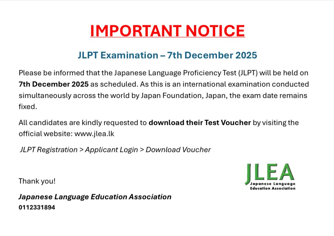 Such an amazing place to study the Japanese language in Sri Lanka.. I studied here for two years, and it was a really big support to improve my Japanese language skills and to continue my university studies well. I want to say thank you from the bottom of my heart to my teachers at the JLEA. And a big thank you to my nostalgic place where we can study the Japanese language successfully in Sri Lanka!!